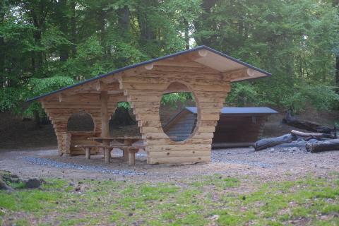 Vi mødes ved parkeringspladsen og følges til shelteren i Hørhaven. Det er den oppe på bakken.